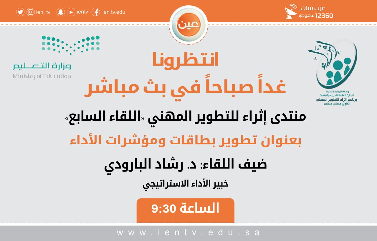 قناة عين On Twitter انتظرونا غدا صباحا في بث مباشر لمنتدى إثراء للتطوير المهني اللقاء السابع بعنوان تطوير بطاقات ومؤشرات الأداء مع خبير الأداء الاستراتيجي د رشاد البارودي Training Moe تابعونا على تردد 12360