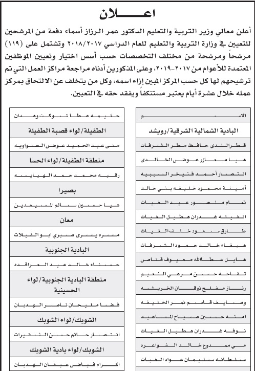 تعيينات معلمين ومعلمات في وزارة التربية والتعليم الاردنية 2018 منتديات أنا الأردن