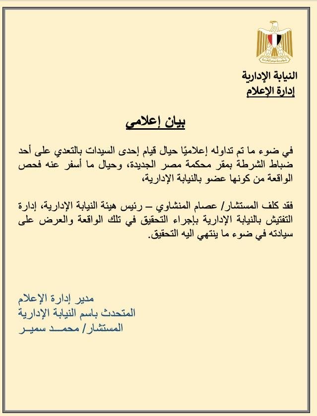 بيان من النيابة الإدارية وإجراء قانوني ضد المتهمة بالتعدي على ضابط شرطة بمحكمة مصر الجديدة Opera News
